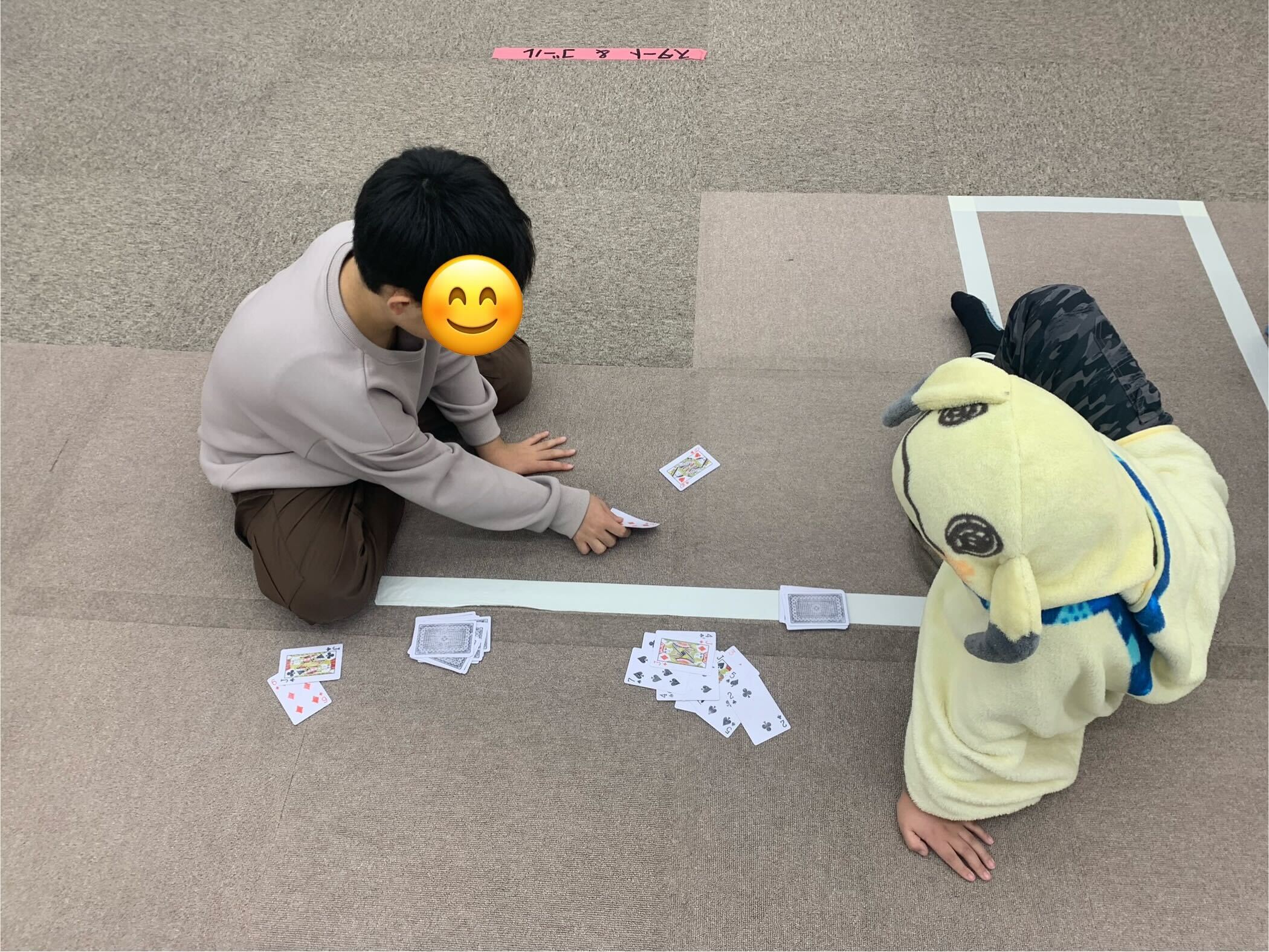 トランプを選んだ2人のお子さんが、何やら新しい遊びを繰り広げている??