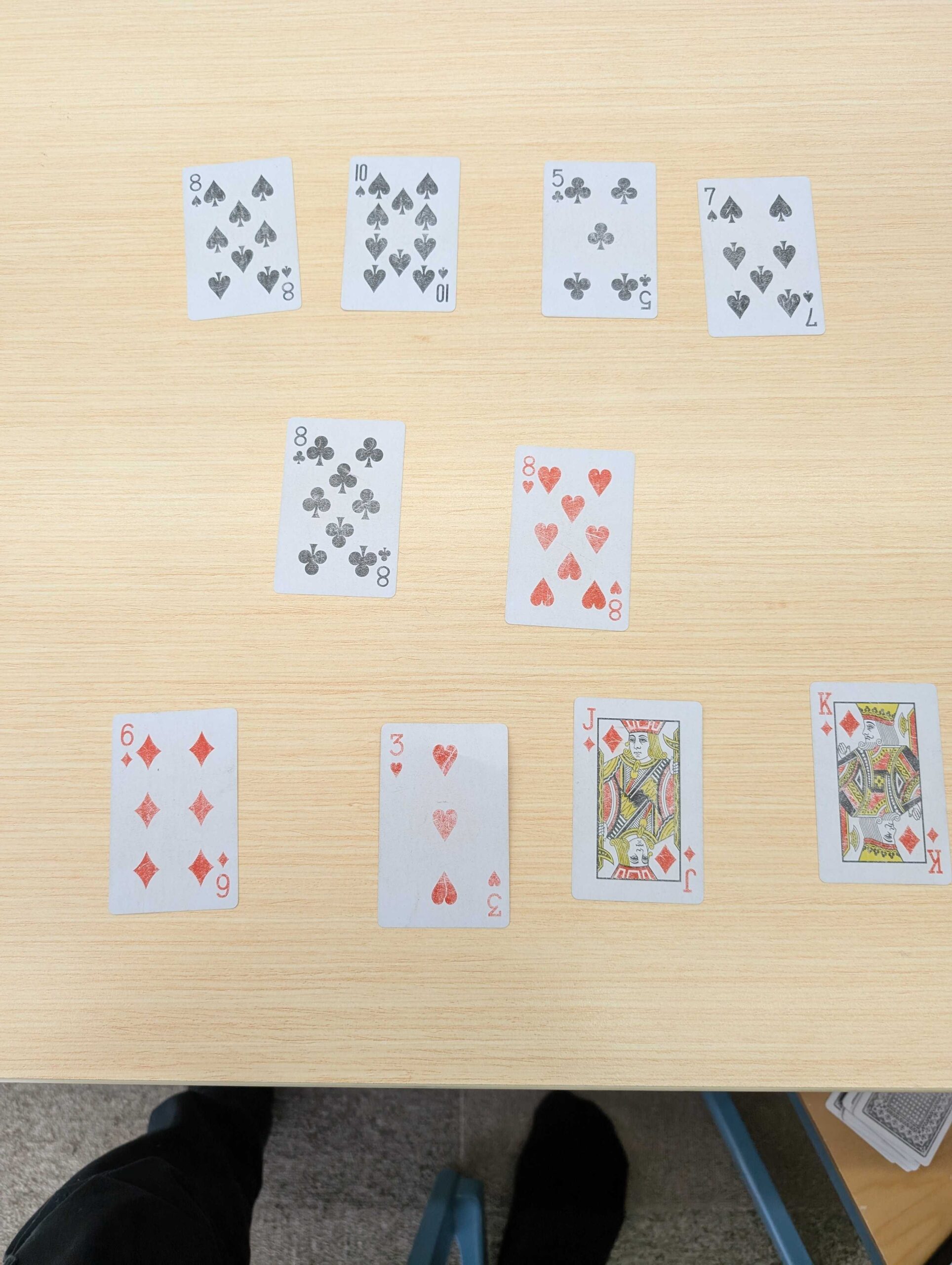 最近、高学年の子たちから「トランプやろう!」と誘われます。赤と黒に分けて良く、きります。