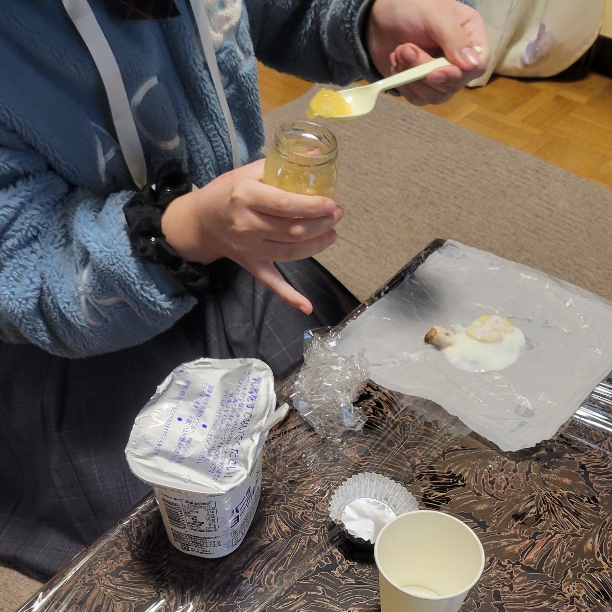 ライスペーパーとヨーグルトとジャム・フルーツというと、「合うのかなぁ?」という疑問を感じた子もいたようでしたが、好評だった様子です。
