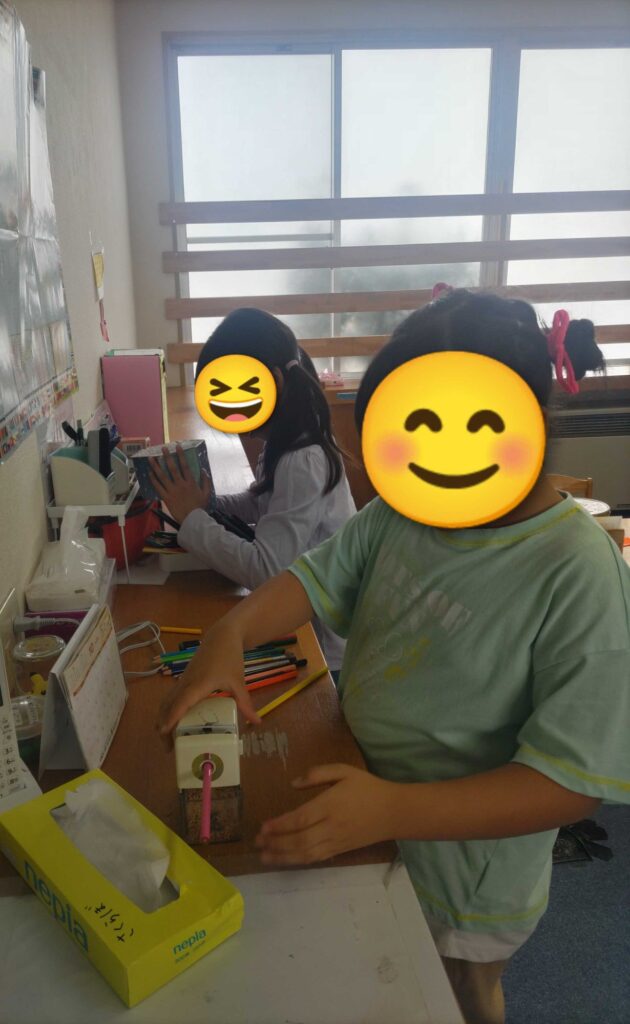 そのあとたくさん時間をかけて、何十本もある色鉛筆を丁寧に削って、綺麗にしまってくれました★