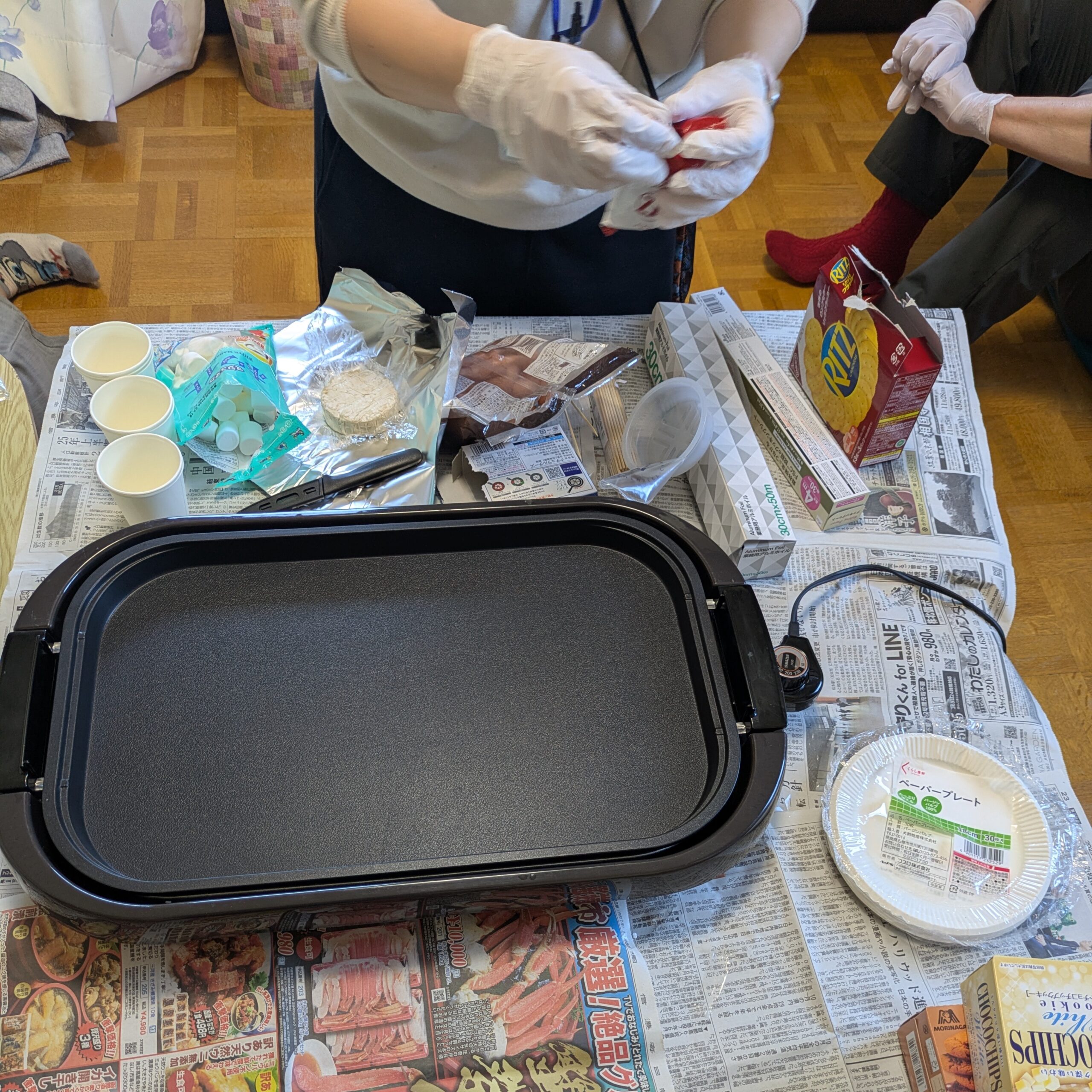 今日はそのお疲れ様会を行いました。ホップレートでウインナーやマシュマロなどを焼いて、ジュースで乾杯。