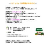 - もうすぐカフェさくらぼこんにちは!放課後等デイサービスさくらぼ須坂中央教室です🍂 須坂教室では、今週の土曜日に「カフェさくらぼ」(保護者会)を開催します!☕ 須坂教室をご利用中の児童の保護者の皆さん …